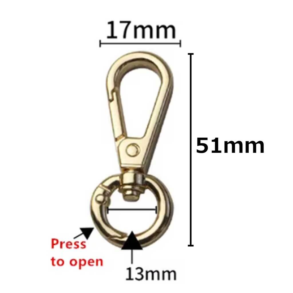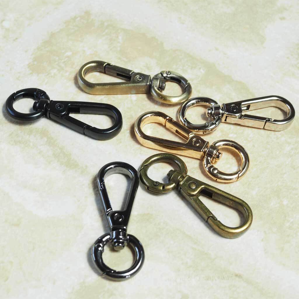 バッグのショルダーストラップを繋ぐフック金具やアジャスターとして利用したり、小物やチャームを付けるときに使えたり、キーホルダー、連結具として工夫次第で色々使えるアイテムです。