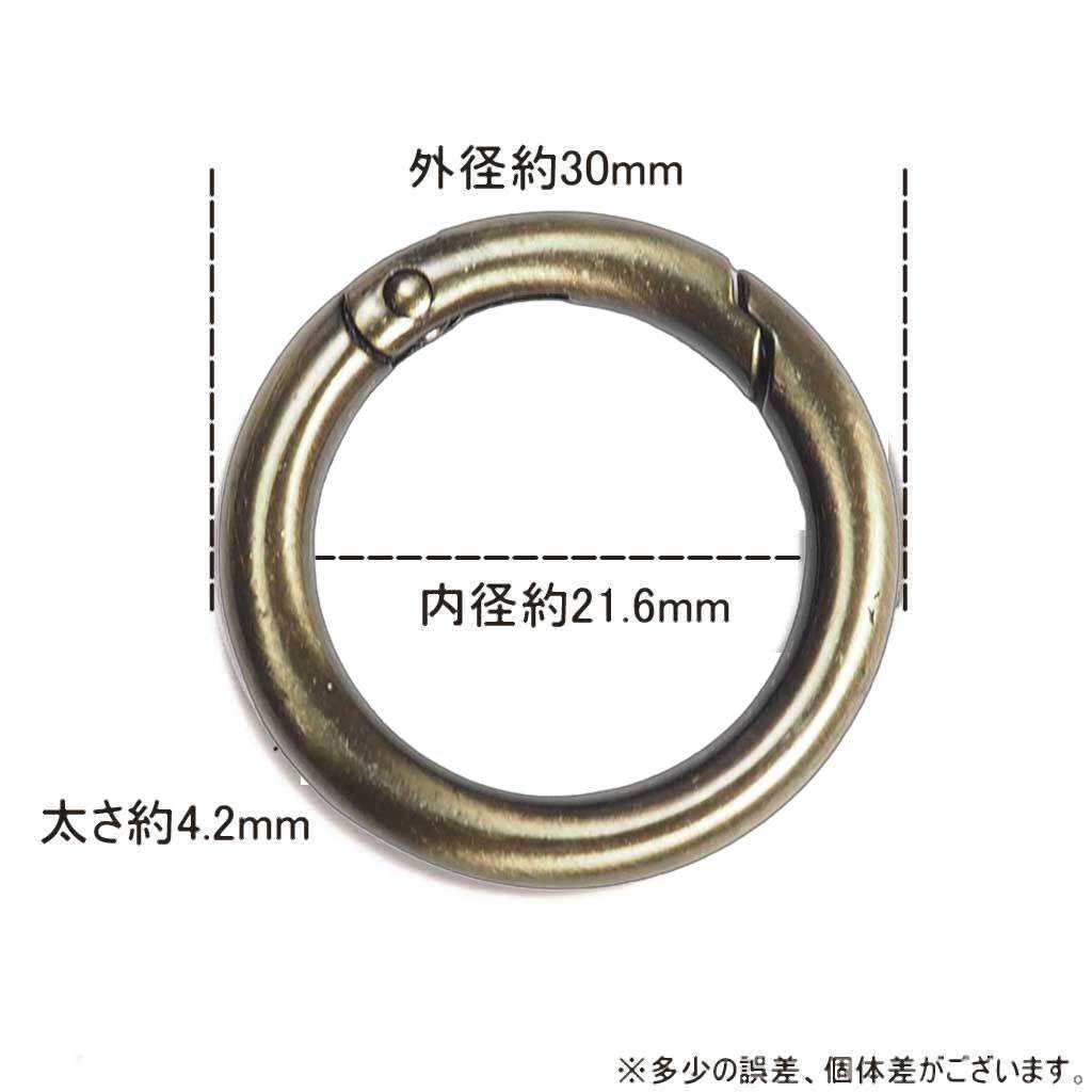 【10個セット】丸型カラビナ/サークルカラビナ 外径30mm 【アンティークブラス】 アクセサリーパーツsrk12