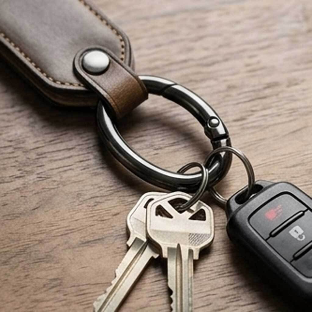 バッグに小物やチャームを付けるときに使えたり、キーホルダーとして鍵類をまとめるのに使ったり、バッグのショルダーストラップのアジャスターとして利用したりと小物をひっかけたり、繋ぐ際に使えるアイテム。