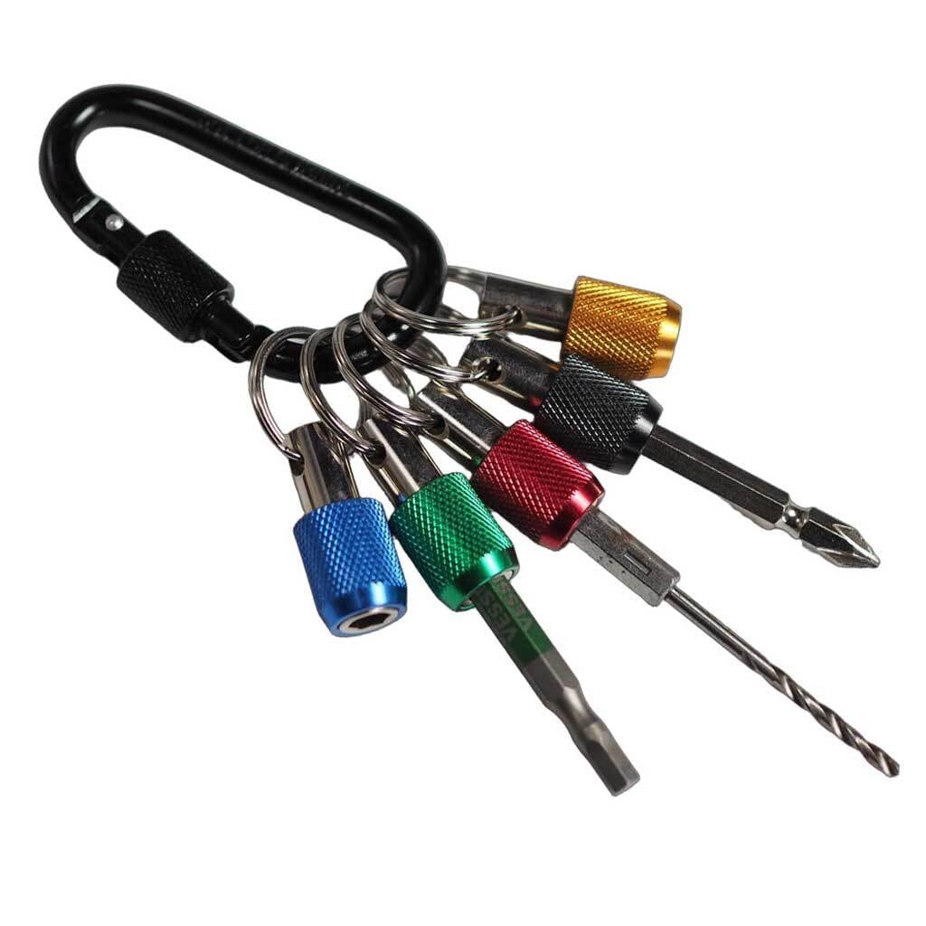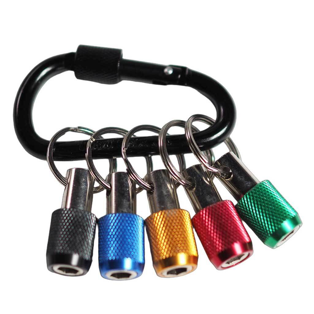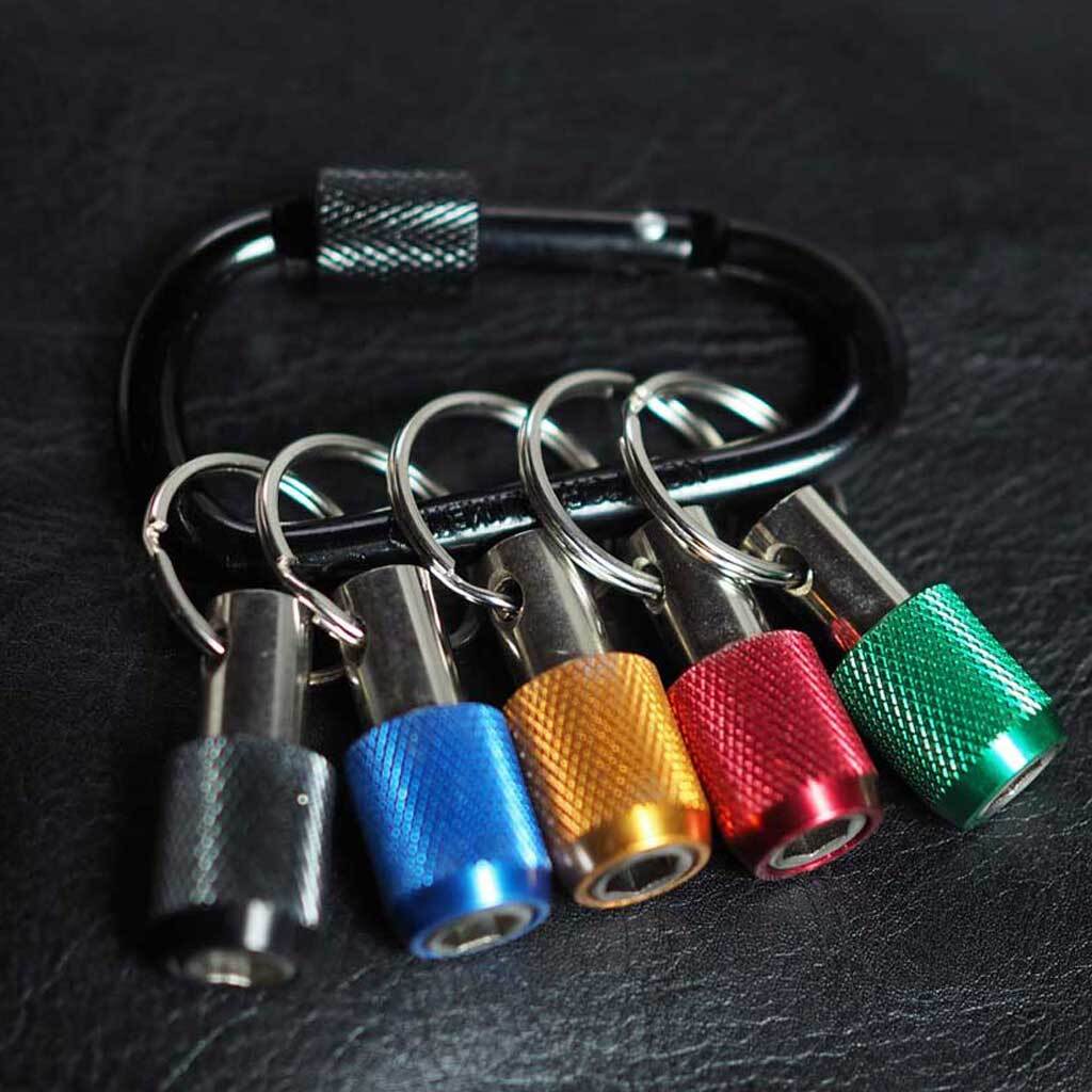 ◆商品名:ロックカラビナ付きビットホルダー キーホルダー型工具ソケット 5カラーセット