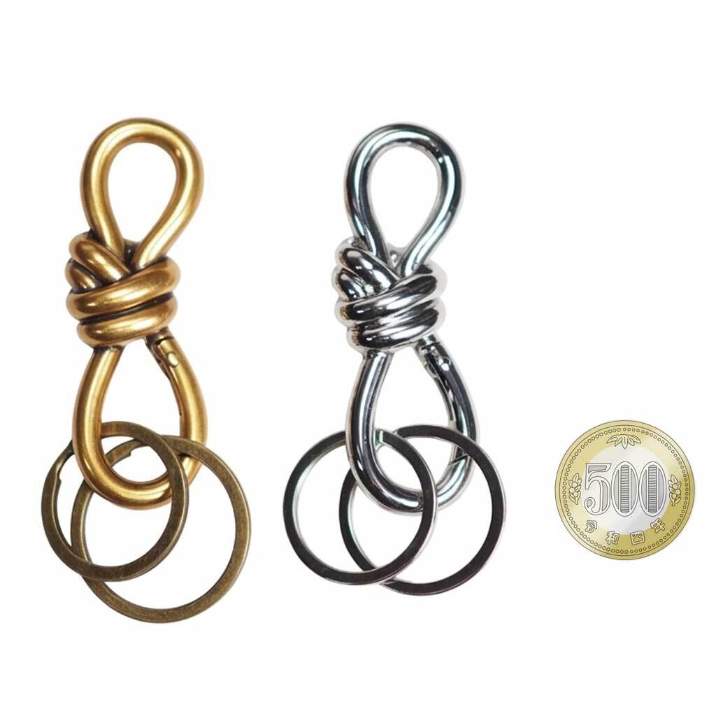 ◆商品名:ツイストノット・カラビナキーホルダー 結び目デザイン 2連リングキーリング ノットワーク・デザインカラビナ