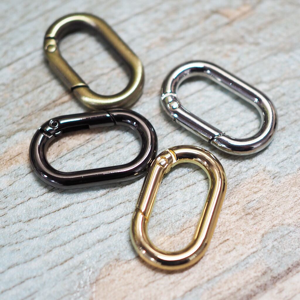 バッグに小物やチャームを付けるときに使えたり、キーホルダーとして鍵類をまとめるのに使ったり、バッグのショルダーストラップのアジャスターとして利用したりと小物をひっかけたり、繋ぐ際に使えるアイテム。