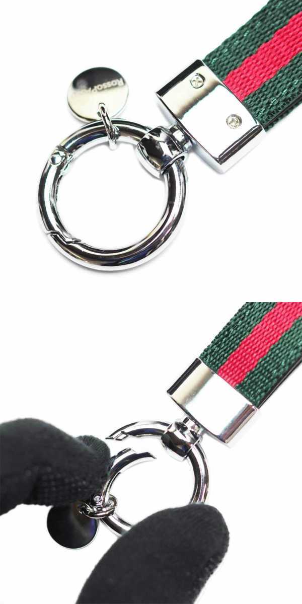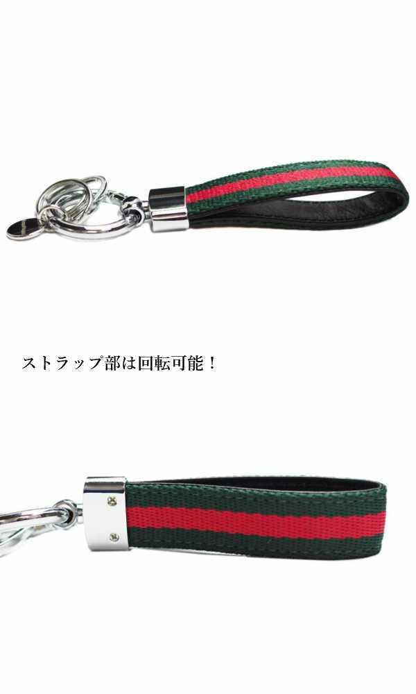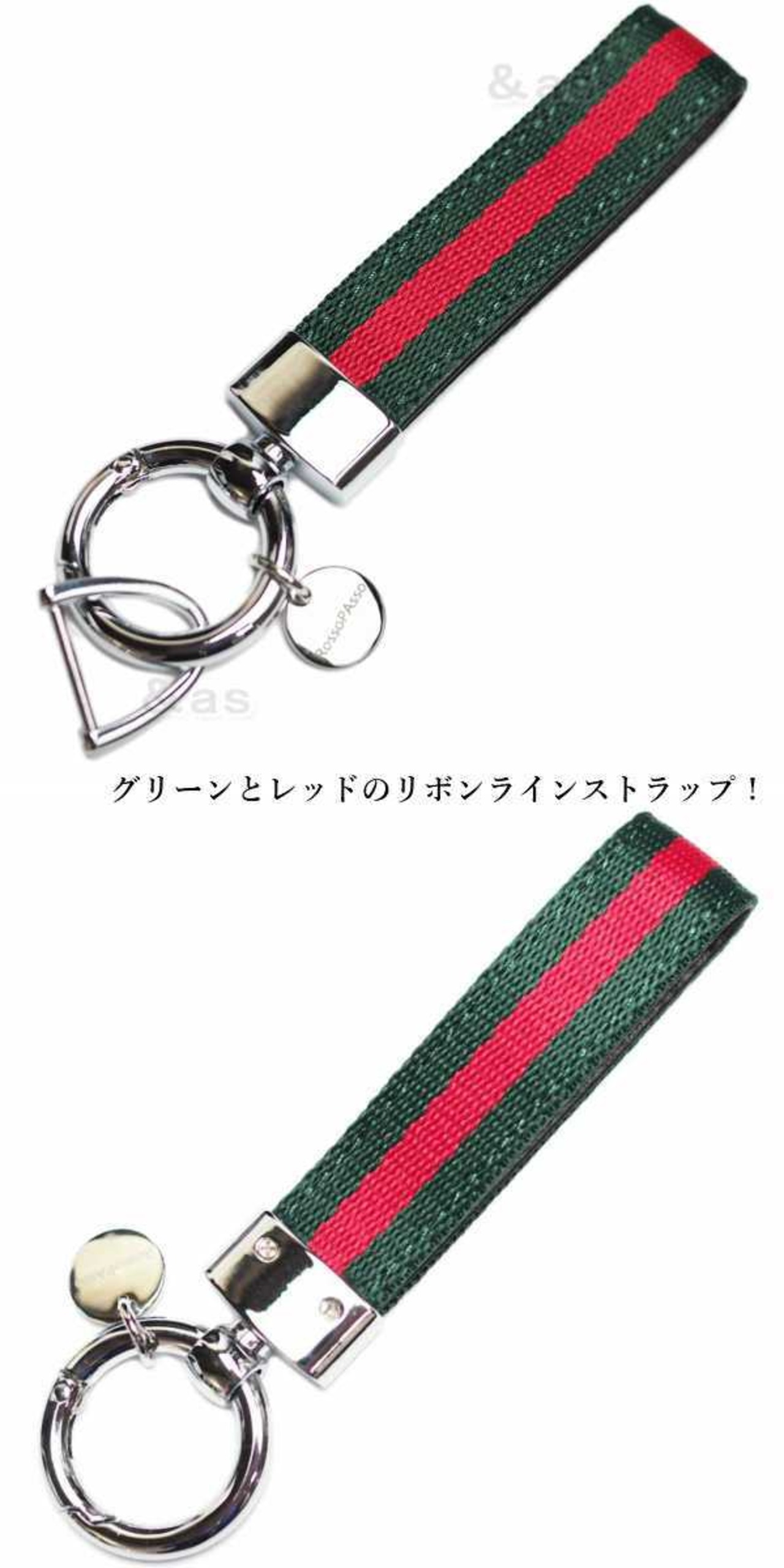 ◆詳細: 緑と赤のラインが印象的なストラップキーホルダー。