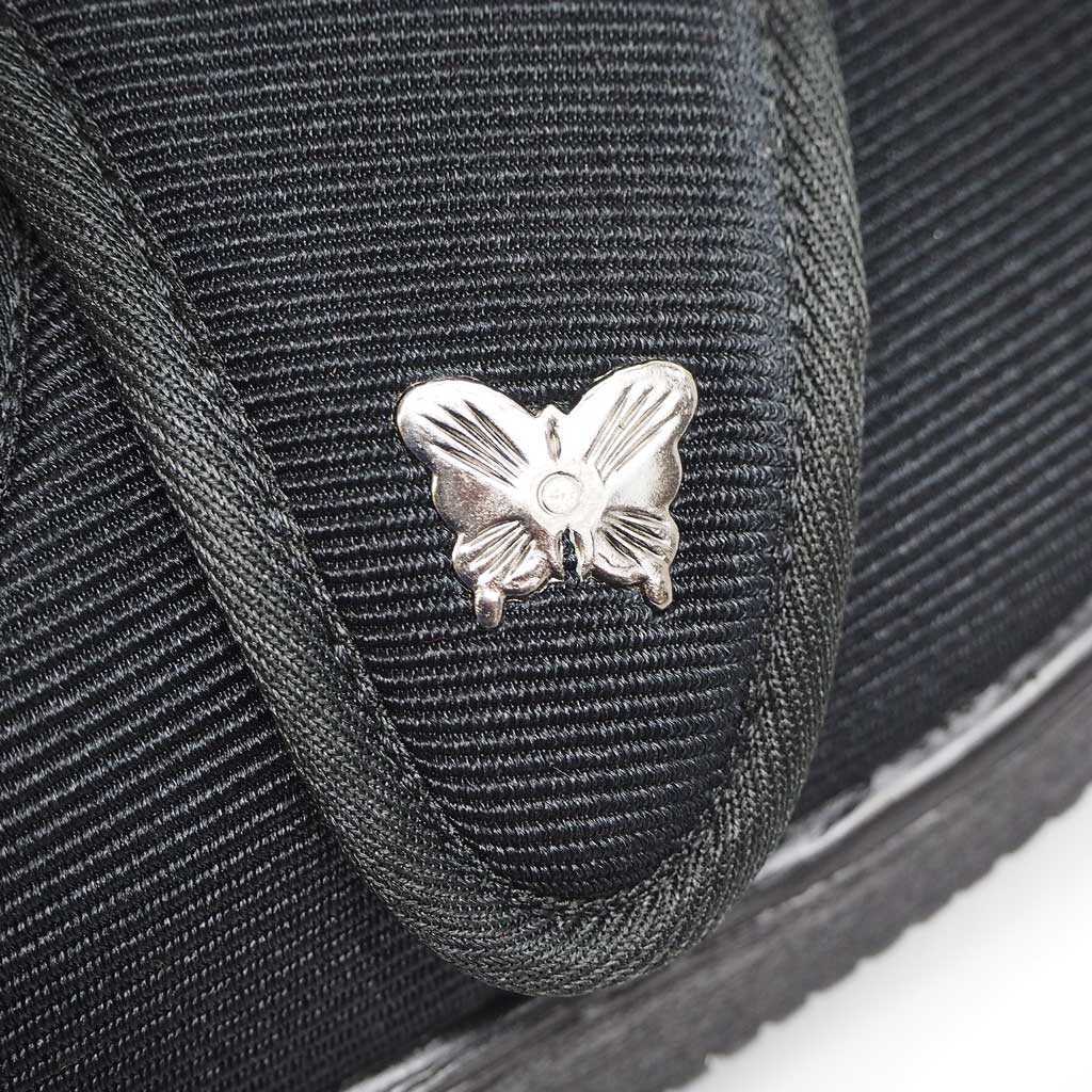 かわいい蝶々のコンチョがワンポイントのマジックテープ式なので、脱ぎやすく、履きやすい仕様です。
