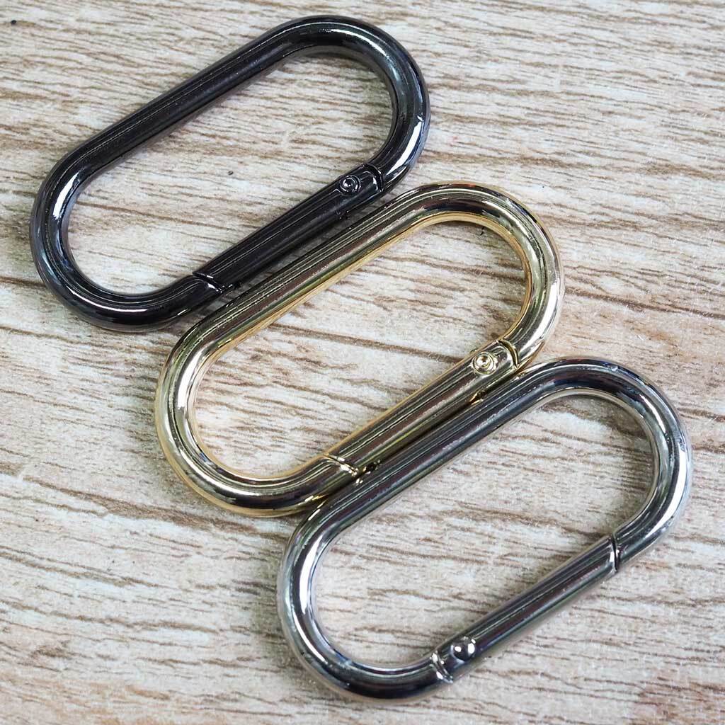 バッグに小物やチャームを付けるときに使えたり、キーホルダーとして鍵類をまとめるのに使ったり、ベルトループに付けたり、バッグのショルダーのアジャスターとして利用したりと小物をひっかけたり、繋ぐ際に使えるアイテム。