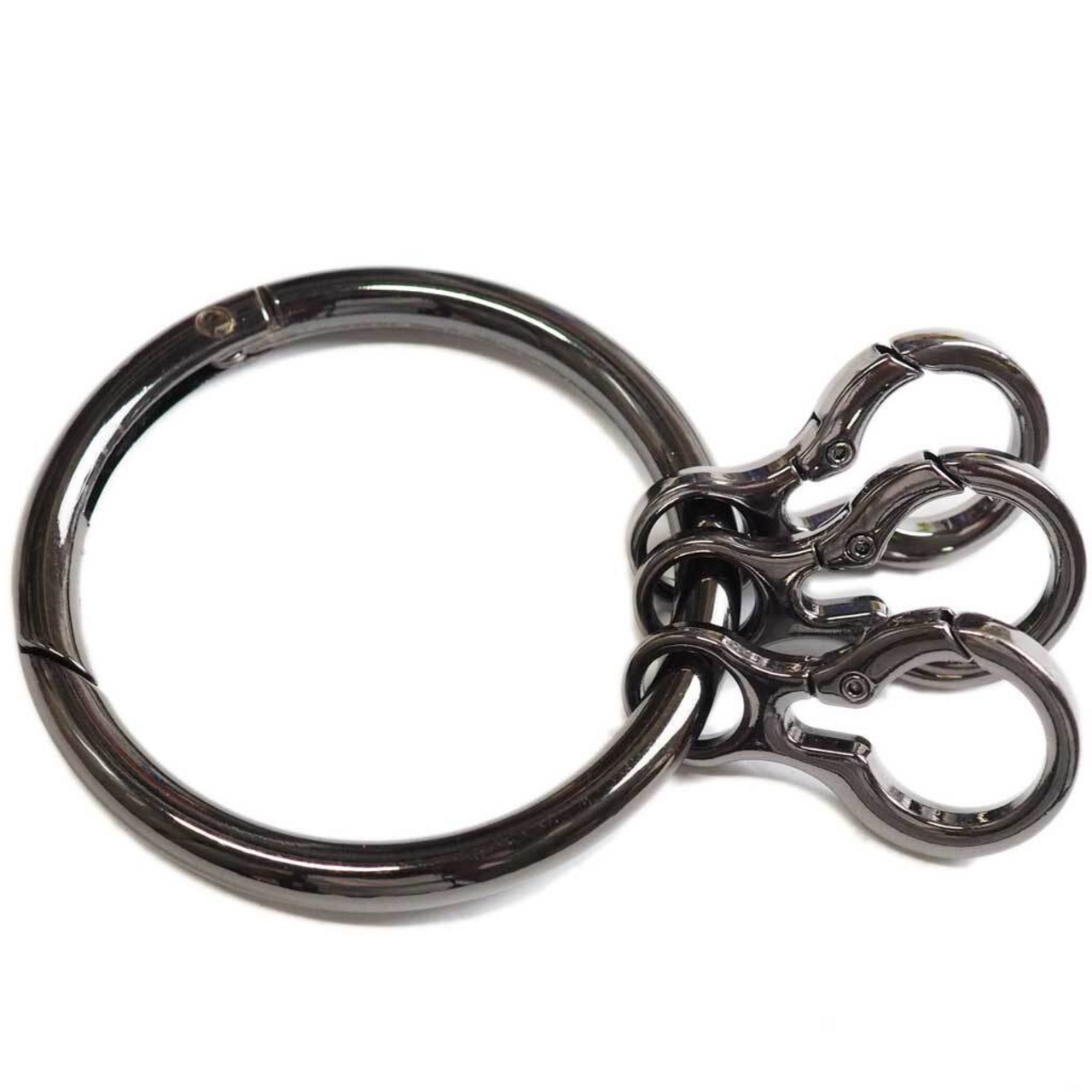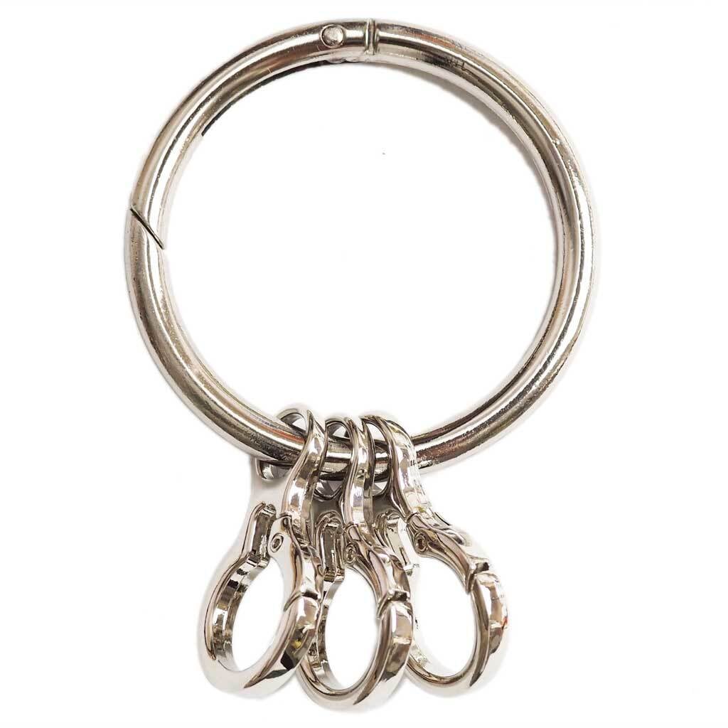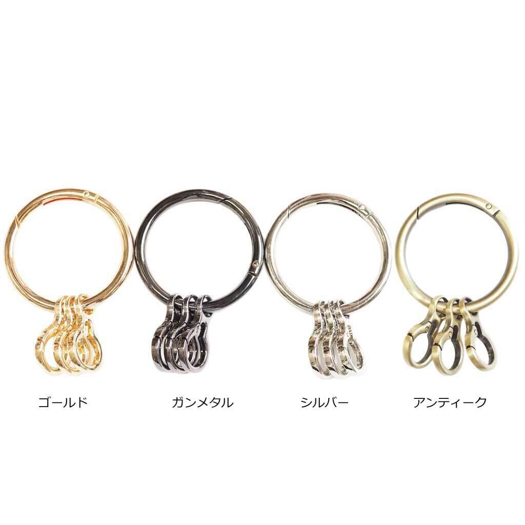 ◆詳細: バネ式の開閉で便利に簡単に使える、60mmと大きな丸型カラビナに3個の環付きカラビナがセットになったキーホルダー。