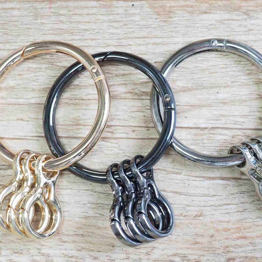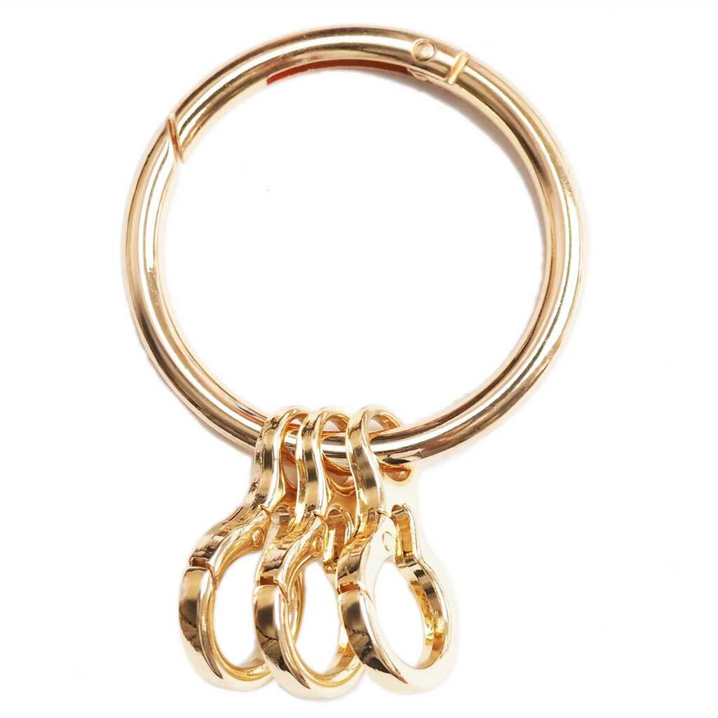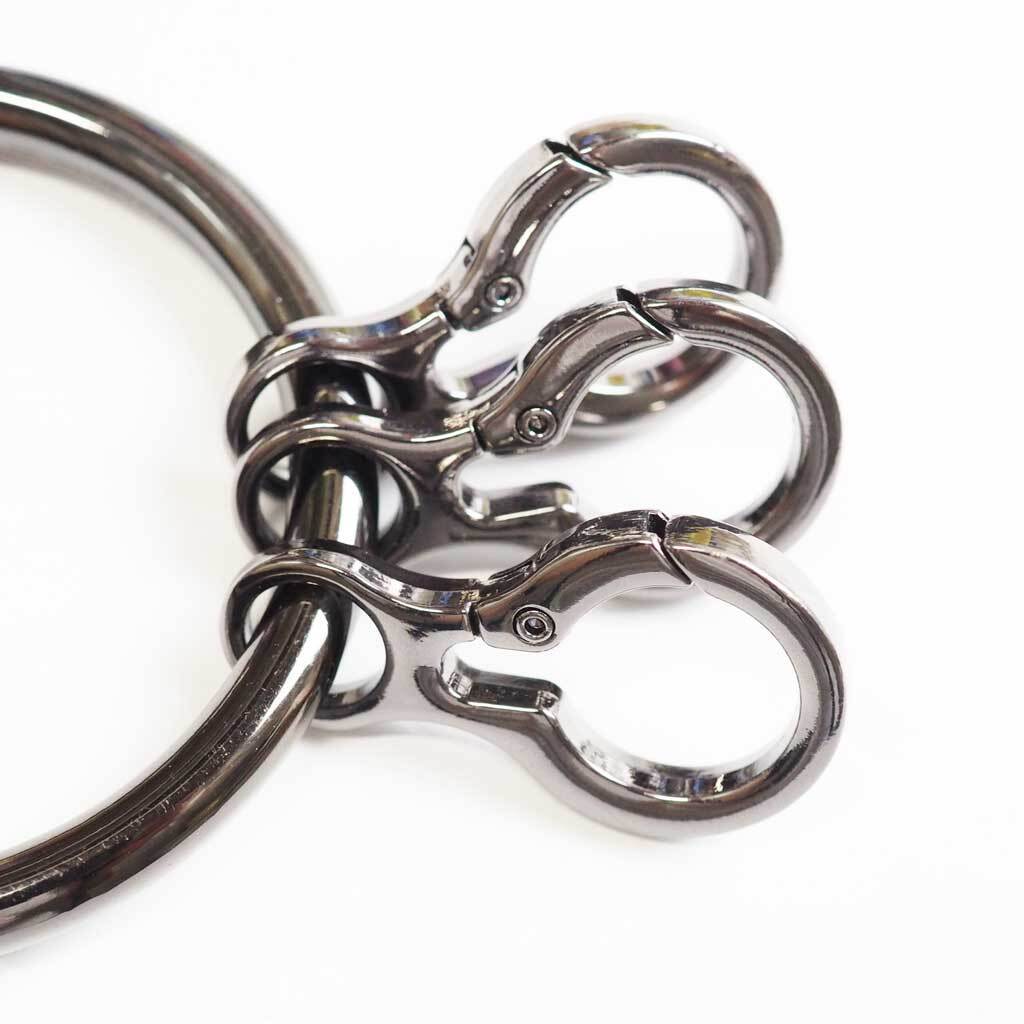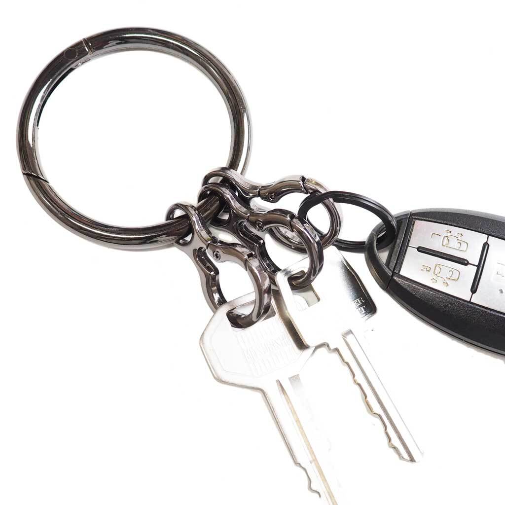 ◆詳細: バネ式の開閉で便利に簡単に使える、60mmと大きな丸型カラビナに3個の環付きカラビナがセットになったキーホルダー。