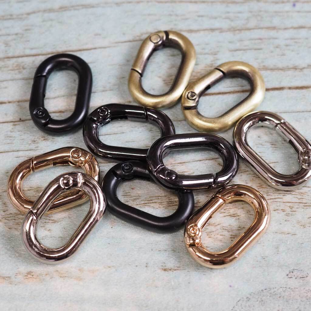 バッグに小物やチャームを付けるときに使えたり、キーホルダーとして鍵類をまとめるのに使ったり、ストラップのフックやアジャスターとして利用したりと、チェーンの駒の様に連結具として工夫次第で色々使えるアイテムです。