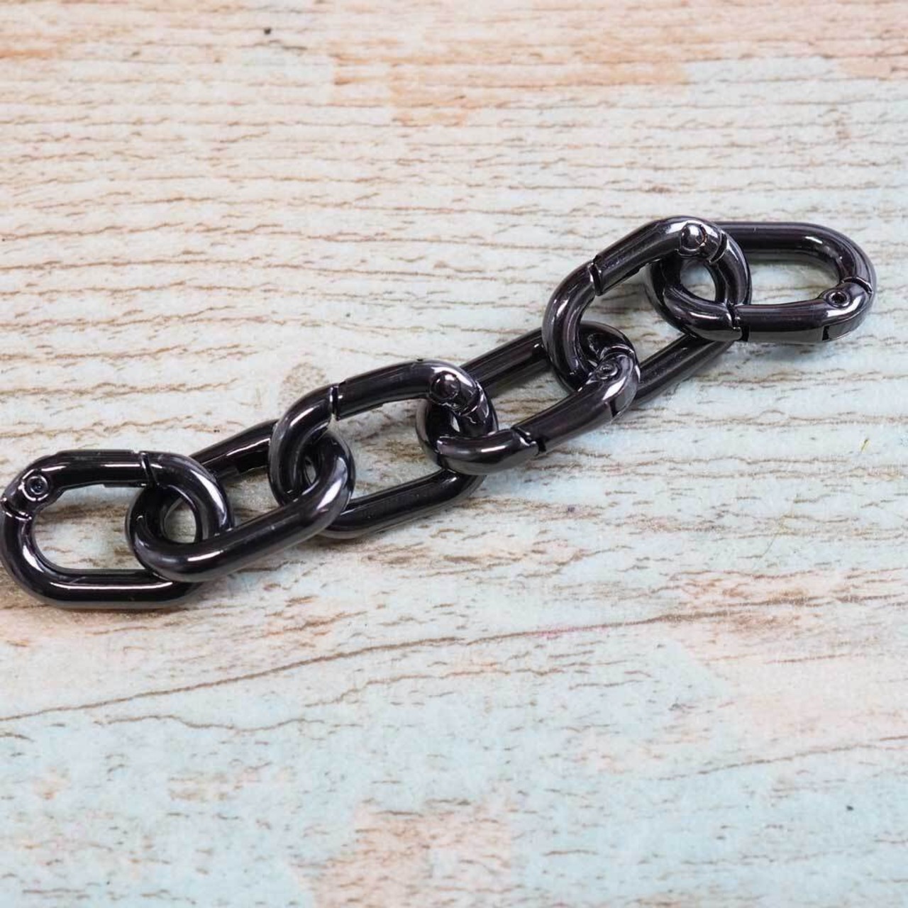 バッグに小物やチャームを付けるときに使えたり、キーホルダーとして鍵類をまとめるのに使ったり、ストラップのフックやアジャスターとして利用したりと、チェーンの駒の様に連結具として工夫次第で色々使えるアイテムです。