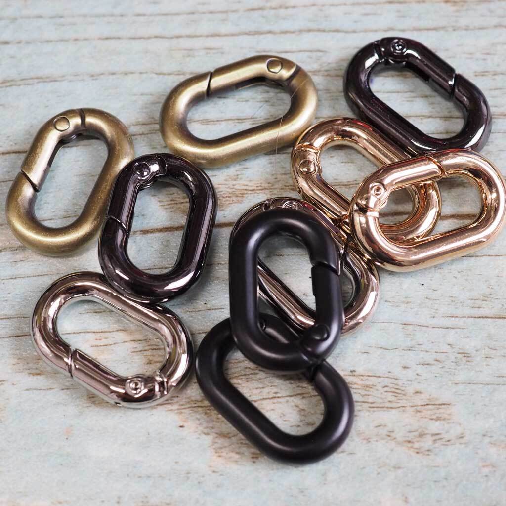 バッグに小物やチャームを付けるときに使えたり、キーホルダーとして鍵類をまとめるのに使ったり、ストラップのフックやアジャスターとして利用したりと、チェーンの駒の様に連結具として工夫次第で色々使えるアイテムです。