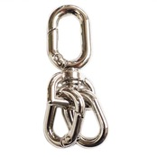 ◆詳細: ゲート部がバネ式で開閉しやすいカラビナに回転するD型金具がついたフック金具と小さいサイズの長円形カラビナ2個とのセット。