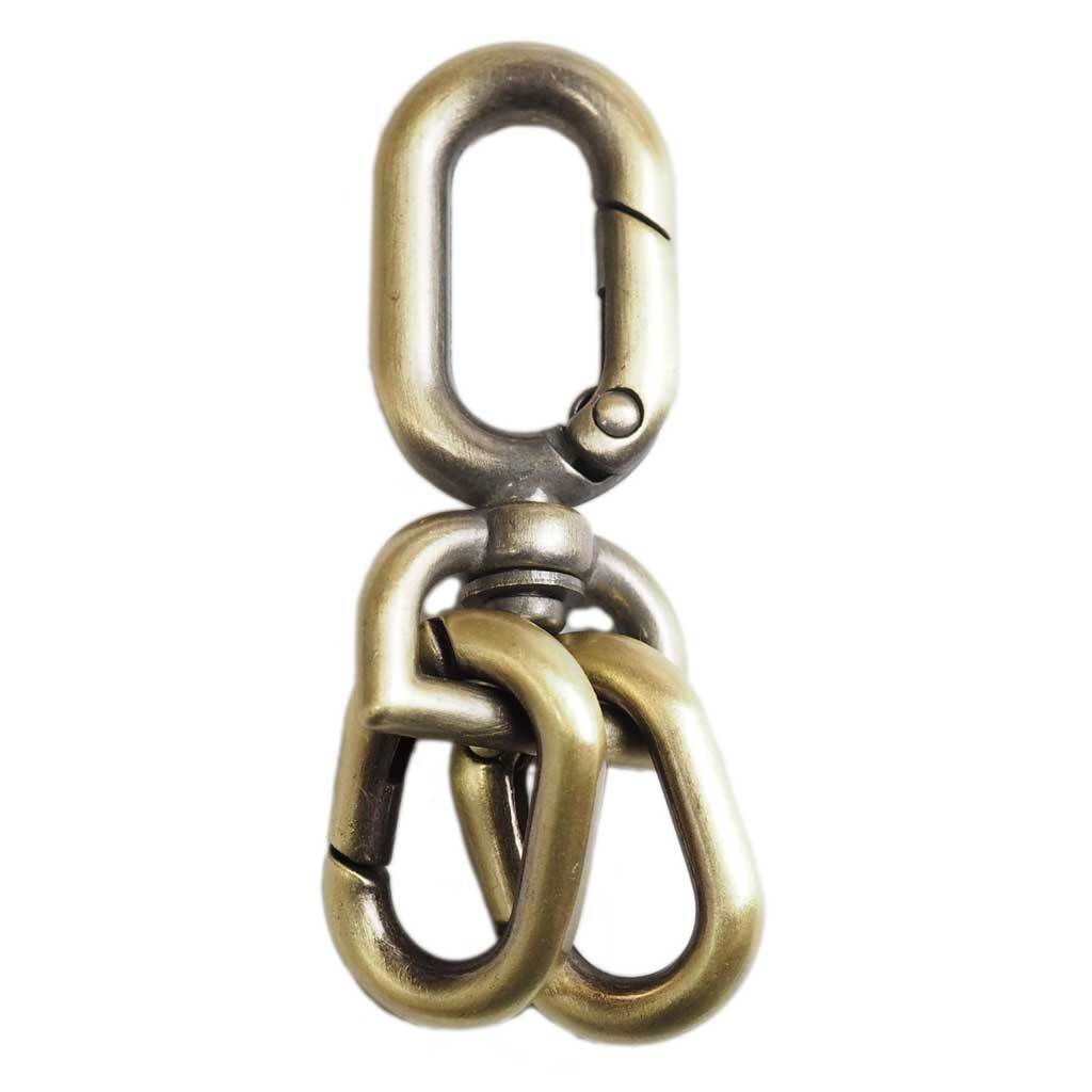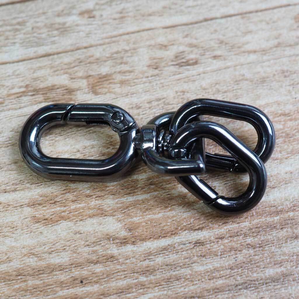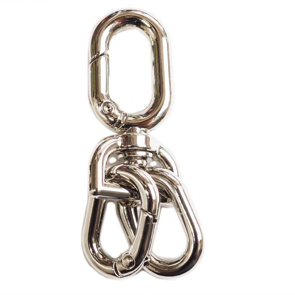 バッグに小物やチャームを付けるときに使えたり、キーホルダーとして鍵類をまとめるのに使ったり、ストラップのフックやアジャスターとして利用したりと、チェーンの駒の様に連結具として工夫次第で色々使えるアイテムです。
